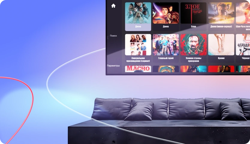 230 + ТВ каналов, тысячи сериалов и фильмов без доплаты, безлимитный домашний интернет до 1 Гбит/с, подписка на онлайн кинотеатр KION